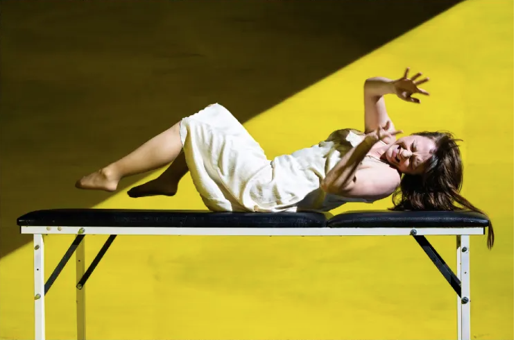 We then scroll through a series of vignettes from her life: their first night together; her postpartum depression following the birth of her daughter; a desperate love affair with a handsome stranger; her trial. Sheehy is an incredible physical actor, contorting her body – sometimes violently convulsing – to reflect her emotional trauma. There are times when the fabric of the play itself seems to collapse, with Ruth speaking in a kind of emotionally wrought beat poetry.